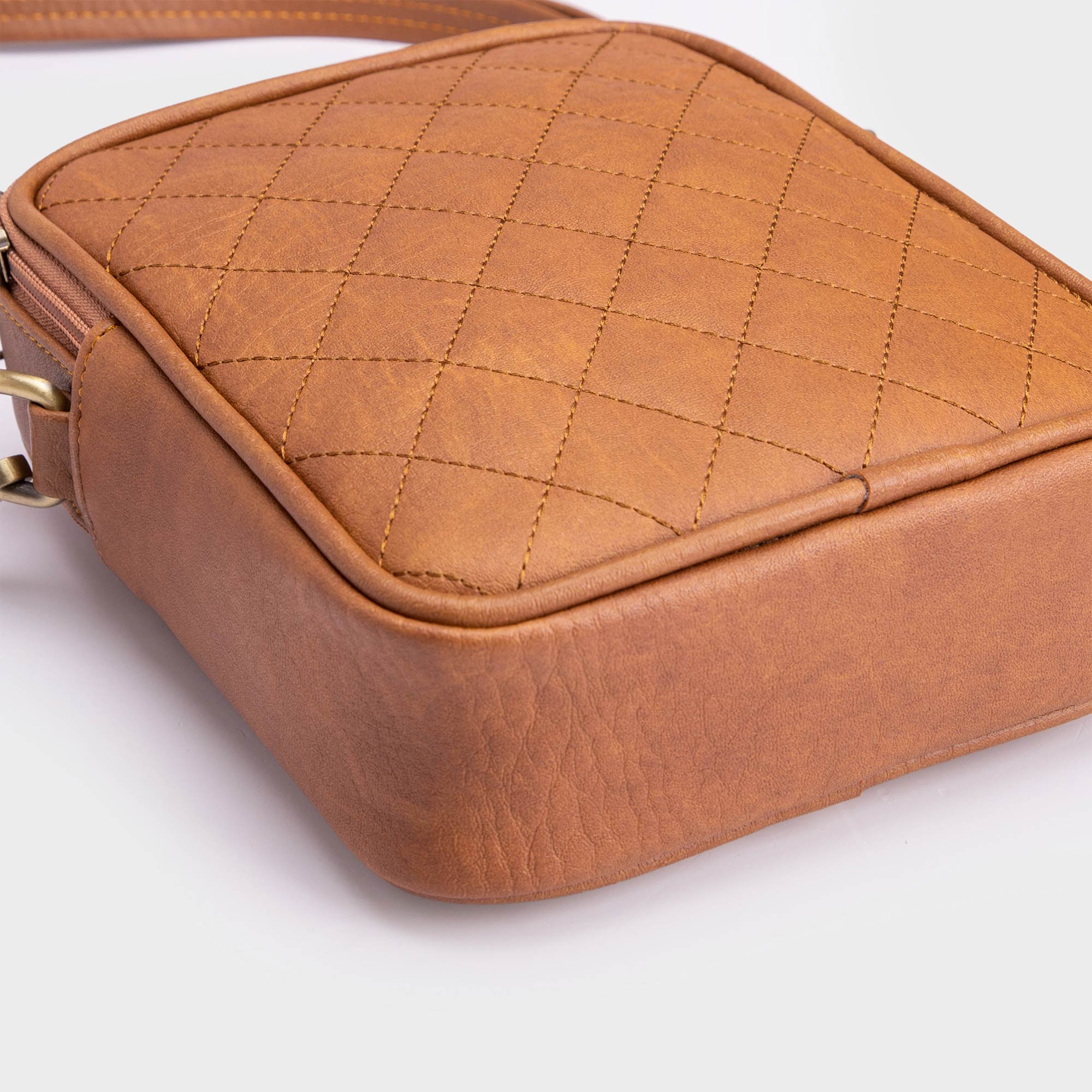Túi đeo chéo da Yuumy Glossy YN303 với form hộp nhỏ gọn, bo góc mềm mại và đường chỉ may chia ô đối xứng, sản phẩm tạo cảm giác chỉn chu và thời trang trong