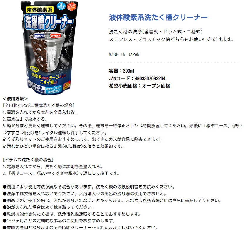 Chai nước tẩy lồng máy giặt 400ml nội địa Nhật Bản - Dùng được cho lồng máy inox, nhựa, cho máy giặt cửa trên và cửa trước, máy giặt lồng nghiêng. Nên sử dụng để