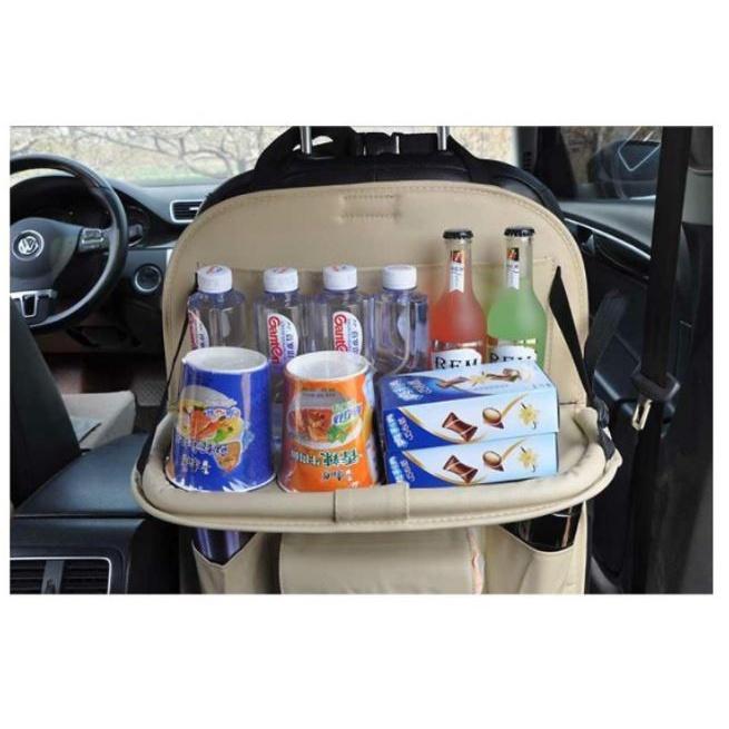 Túi da đựng đồ đa năng treo sau ghế Ô tô, Xe hơi – Tích hợp bàn ăn tiện lợi. Sản phẩm vừa là túi đựng đồ vừa có tác dụng mở ra thành chiếc