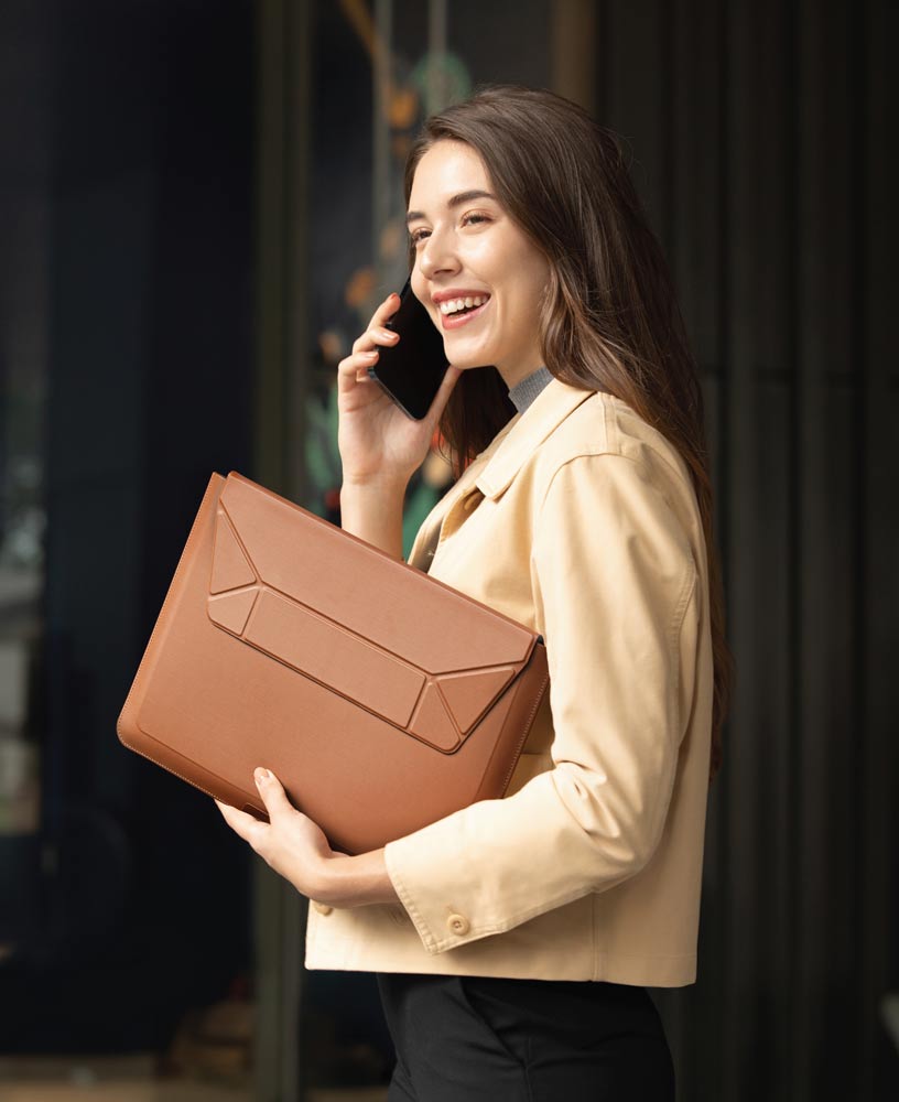 - Bao da cao cấp cho Macbook Air, Macbook Pro, Surface, các loại Laptop được làm từ chất liệu da cao cấp mang lại vẻ đẹp trang nhã, sang trọng cùng độ bền bỉ cao