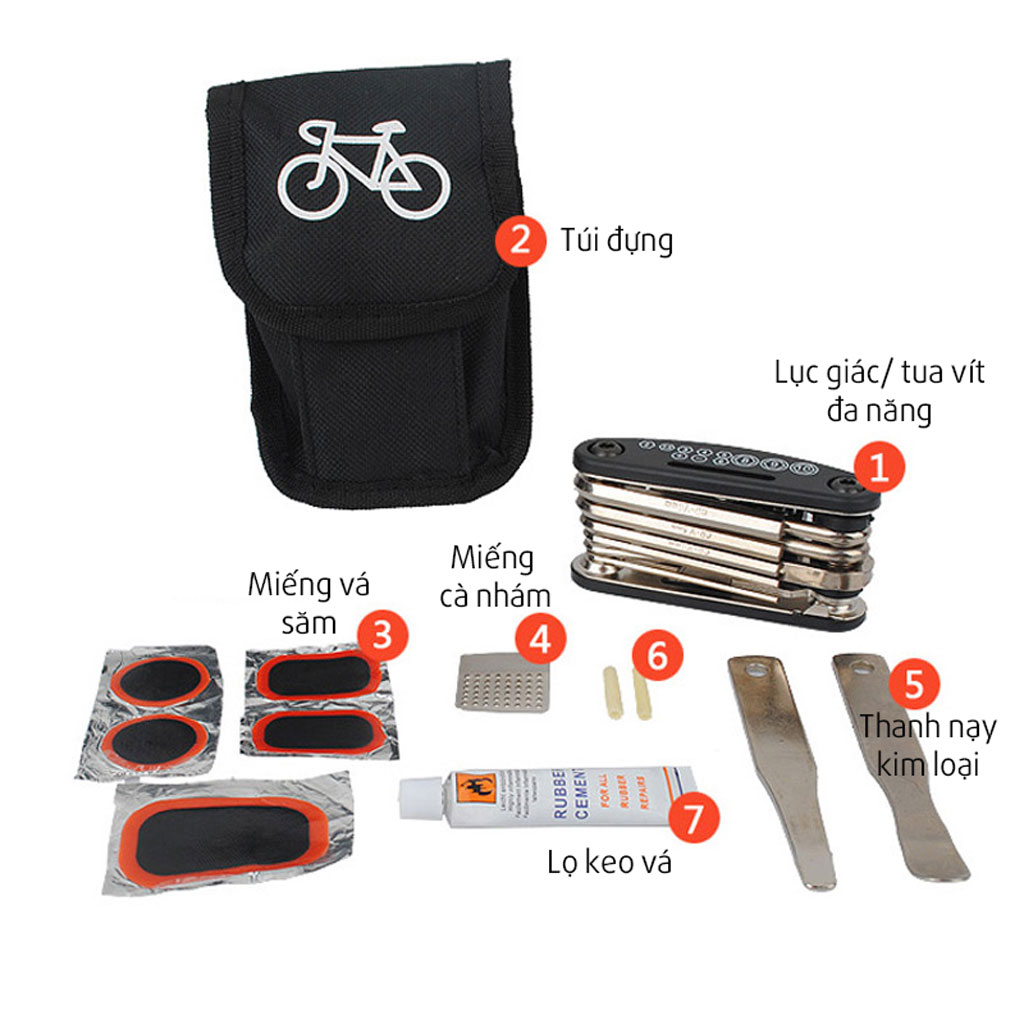 Đi kèm các bộ dụng cụ vá săm mini cho xe đạp khi cần sử dụng