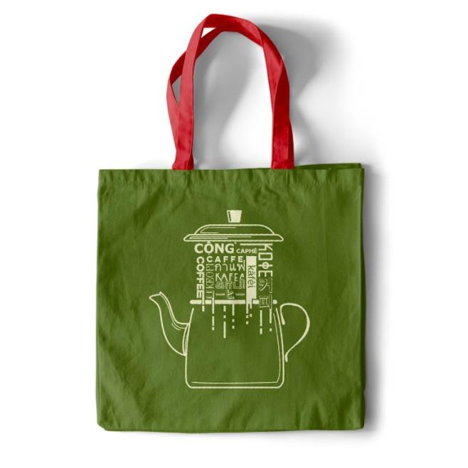 Túi vải canvas Cộng Cà Phê xanh quai đỏ