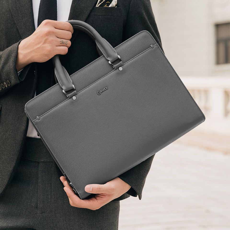 ✨Túi Xách Cặp Da Nam Doanh Nhân GENCE CGL10 Da Bò Khóa Số Cao Cấp Màu Ghi Xám