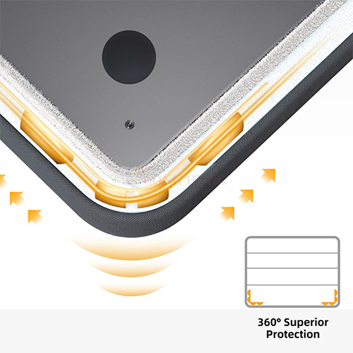 - Sử dụng công nghệ sáng chế tiên tiến của Hoa Kỳ CornerArmor trang bị phía dưới túi chống sốc một lớp đệm bảo vệ 360* xung quanh vành túi một cách an toàn như