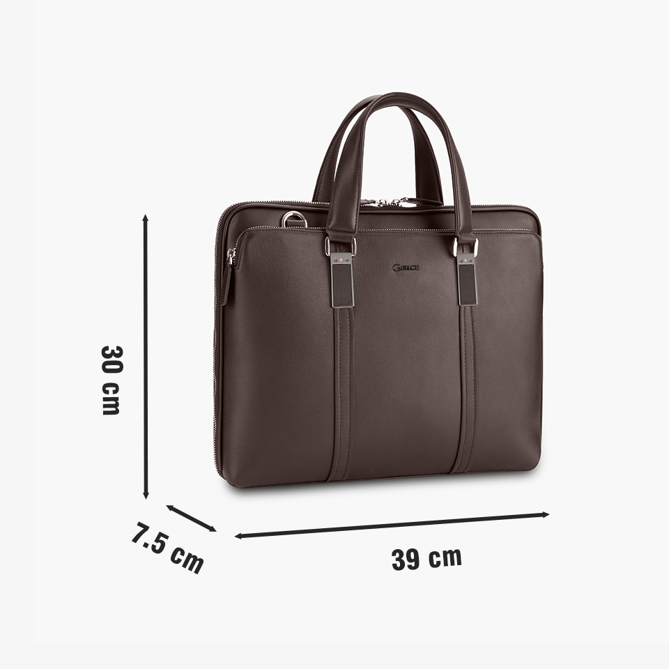 THÔNG TIN SẢN PHẨM Xuất Xứ: Gence Việt Nam - Da thật, Giá trị thật Mã Hàng: GCE26 Kích Thước: 39cm(Dài) x 30cm (Cao) x 7.5cm (Dày) Chất Liệu: Da bò Swift Màu Sắc: Nâu