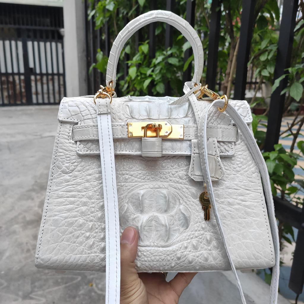 ✨Túi xách nữ size 25 có dây đeo. Da cá sấu BẠCH TẠNG - ĐẸP TINH KHIẾT!
