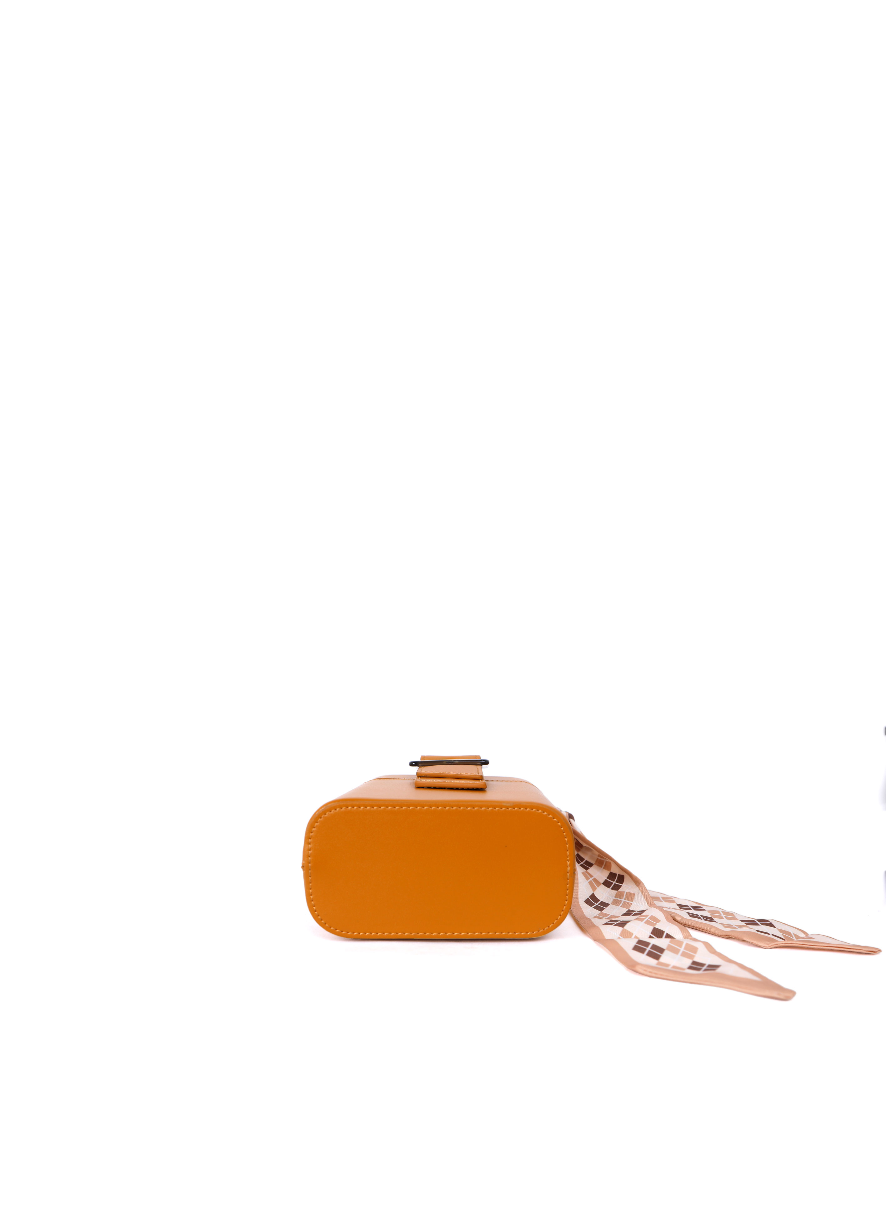 Sản phẩm hình hộp độc đáo kèm dây đeo chéo bằng da tiện lợi.