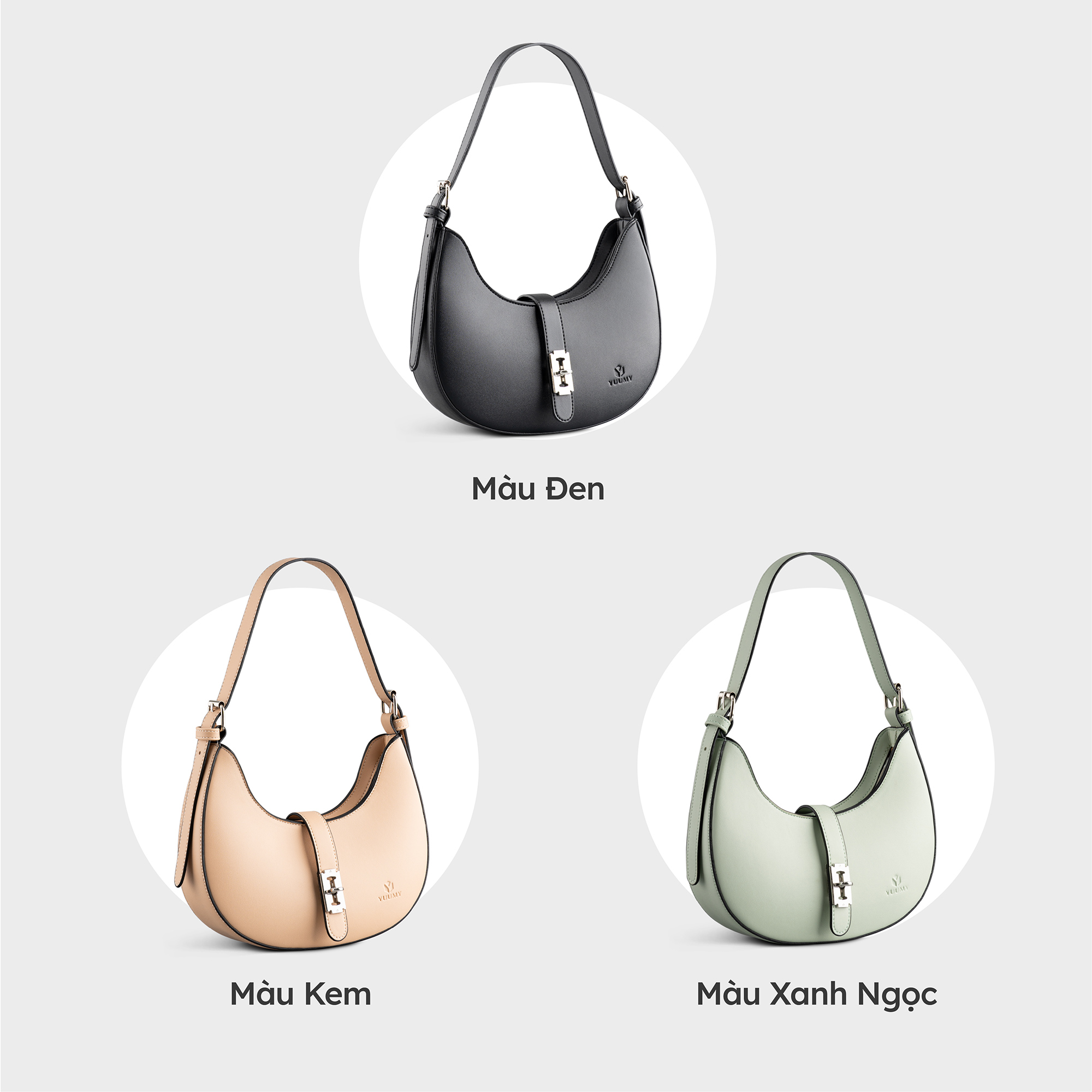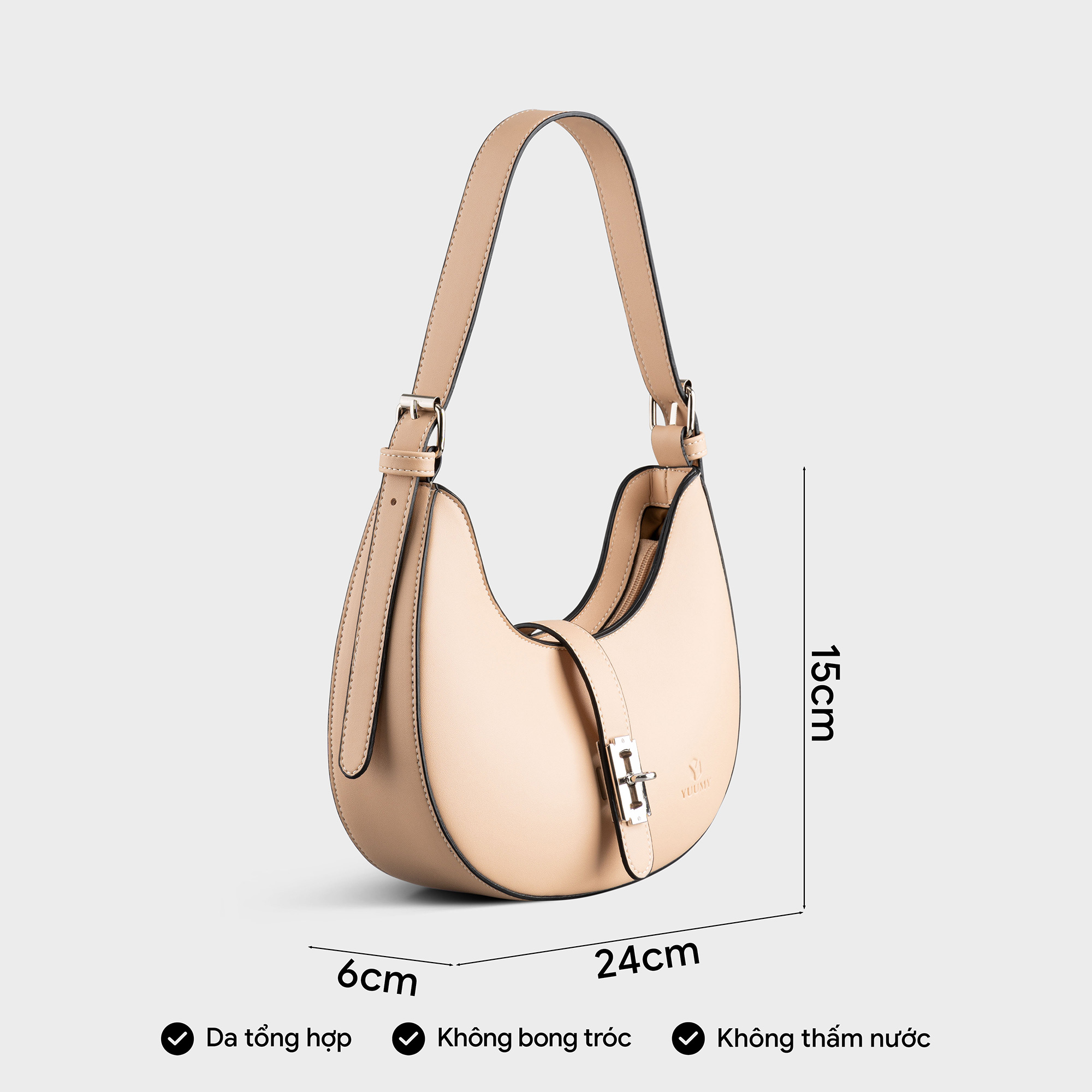 THIẾT KẾ NỔI BẬT - DÁNG CHUẨN FORM - Thiết kế túi hình bán nguyệt nữ tính, hiện đại, cùng chất liệu da chống trầy, chống bám nước. - Khóa gài trang trí cách