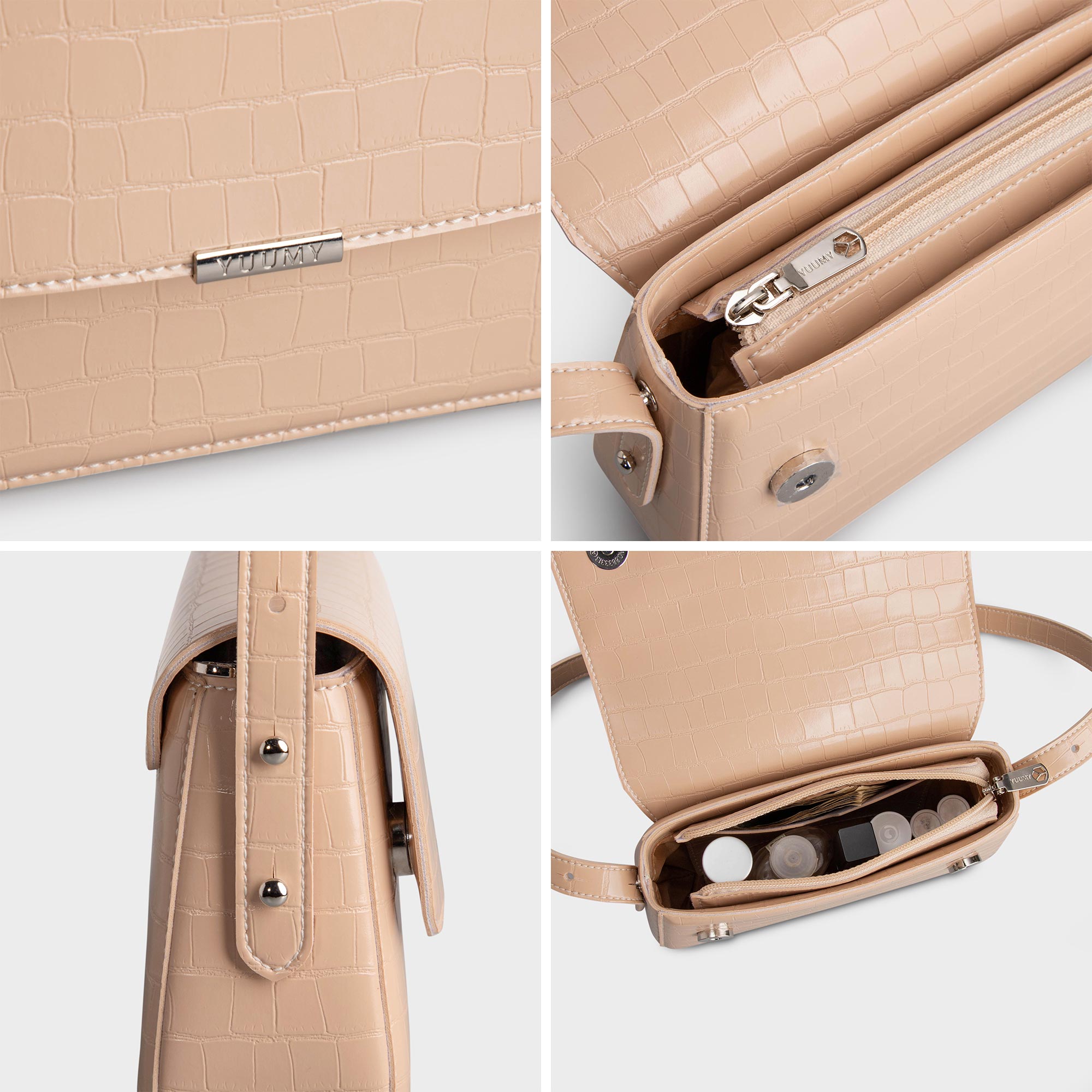 Túi đeo vai da nữ thời trang Yuumy YN198 có phom dáng cứng cáp. Túi sử dụng chất liệu da tổng hợp cao cấp dập họa tiết vân vảy như một điểm điểm nhấn cá