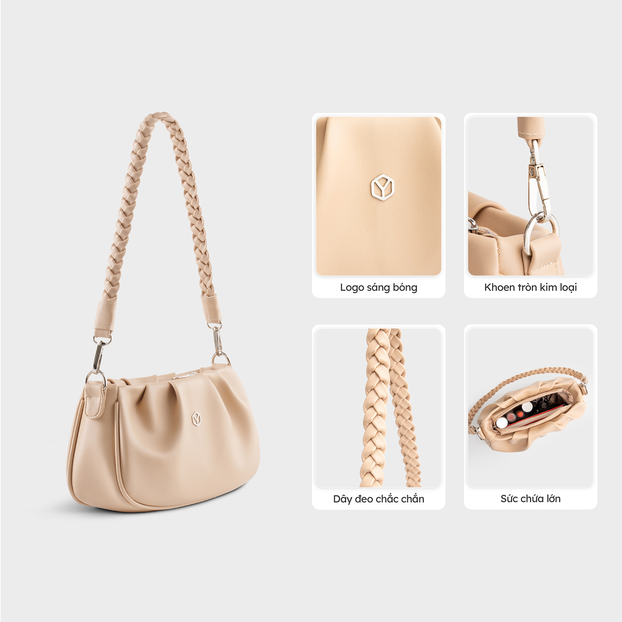 Túi xách vai Yuumy YTX76 với thiết kế dáng vòm mềm mại, form đứng vững vàng cùng gam màu dịu nhẹ, chiếc túi này dễ dàng đồng hành cùng bạn trong nhiều hoàn cảnh –