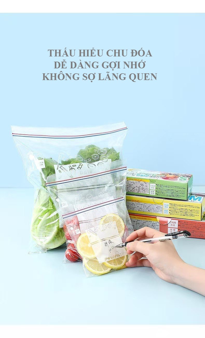 Phân loại: 3 size S,M,L Size S: Kích thước 1 túi 160x140+20mm (1 hộp 20 cái) Size M: Kích thước 1 túi 180x200+20mm (1 hộp 15 cái) Size L: Kích thước 1 túi 270x280+20mm (1 hộp 10 cái) Công dụng: đựng bảo quản rau củ quả, thịt cá, trái cây, các loại hạt, bánh kẹo... Hộp túi zip chất lượng Nhật Bản, sử dụng tiện lợi, bảo quản thức ăn tươi ngon hơn, tránh bụi bẩn và côn trùng bám vào. Có 3 size để lựa chọn cho phù hợp với nhu cầu sử dụng của mình, có thể tái sử dụng nhiều lần.