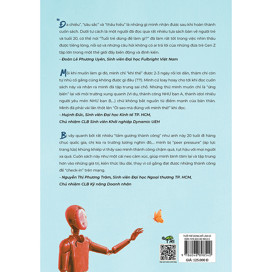 Cuốn sách Tuổi Trẻ Dùng Để Làm Gì? như một người cố vấn cho các bạn trẻ trong thời đại ngày hôm nay những vấn đề cập nhật, hay những chủ đề muôn thuở mà nhiều bạn trẻ đang gặp phải. Đồng thời cũng là lời giải đáp cho các bạn trẻ về nhiều câu hỏi tại sao trong cuộc sống. “Những bài viết trong cuốn sách này là những trải nghiệm của bản thân tôi cũng như những trăn trở mỗi ngày của tôi với một mong mỏi: giúp các bạn trẻ tận dụng được thời gian tuổi trẻ và những tiềm năng của mình một cách hiệu quả nhất để có thể tiếp tục gặt hái những thành công quan trọng hơn trong cuộc sống.”