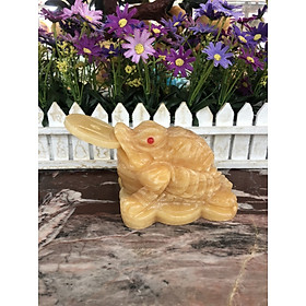 Chất liệu: Đá vàng cà rốt Kích thước: Dài 20 cm x Rộng 11 cm x Cao 11 cm Khối lượng: 3 kg Thiềm Thừ được người xưa gọi là Cóc tài lộc, Cóc ba