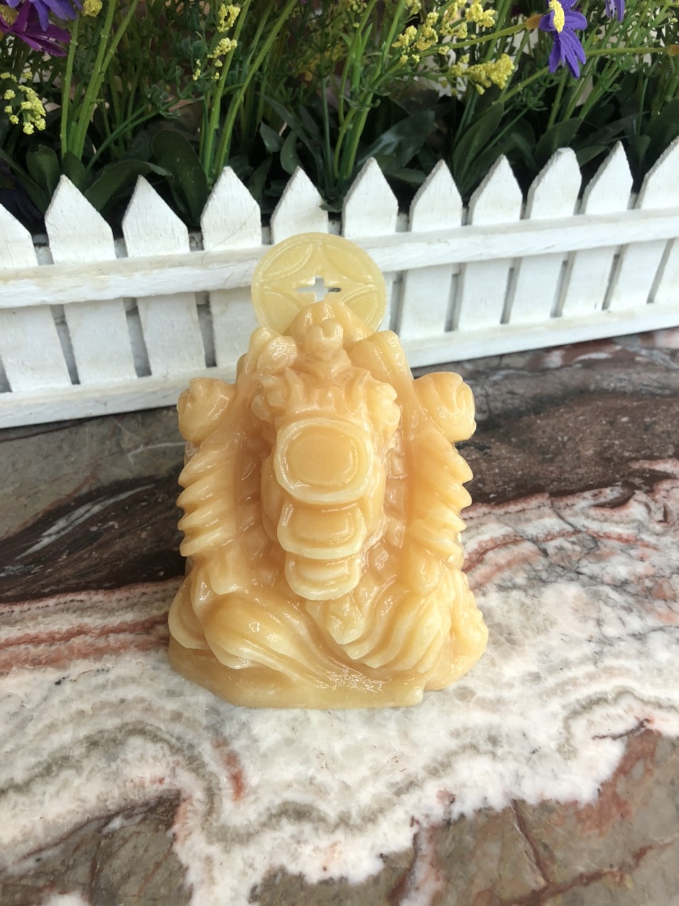 Chất liệu: Đá ngọc hoàng long Kích thước: Dài 12 cm x Rộng 8 cm x Cao 8,5 cm Khối lượng: 890g Trong truyền thuyết Long Sinh Cửu Phẩm (Chín đứa con của rồng) thì
