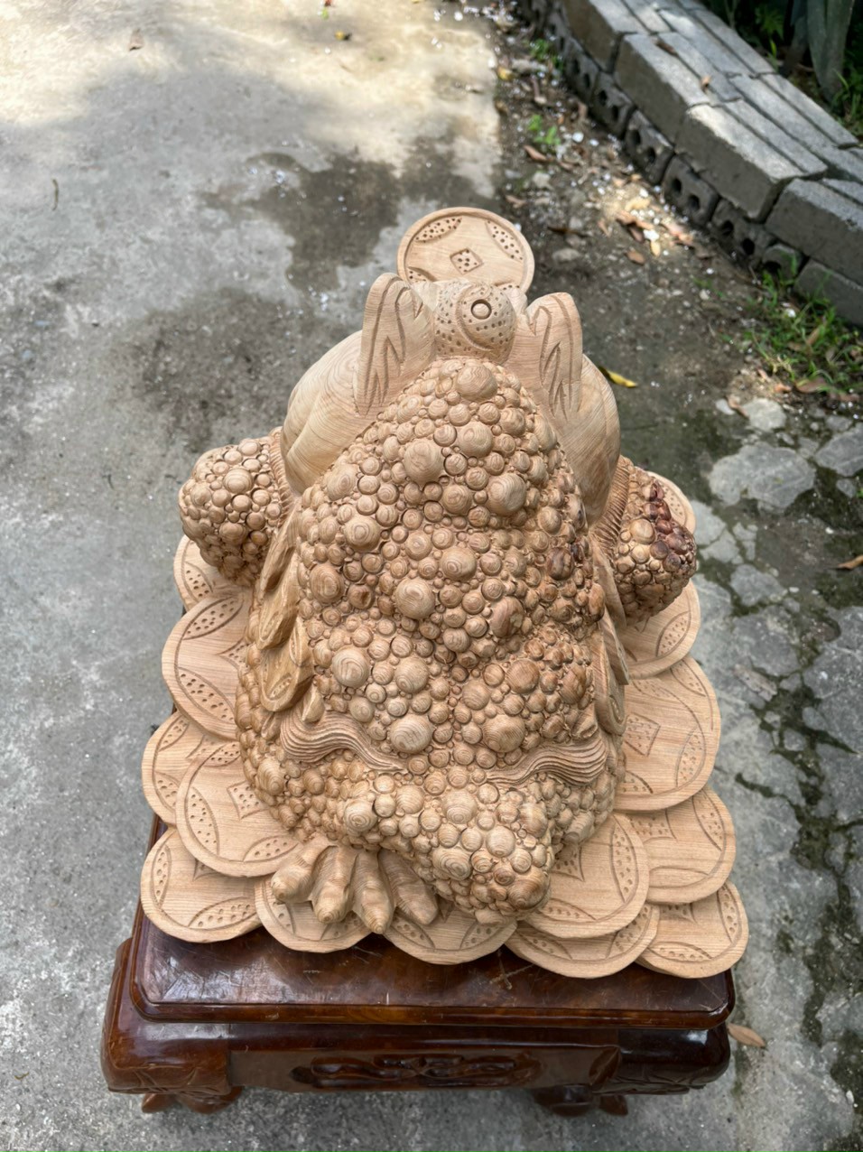 ✨Tượng cóc thiềm thừ ngậm tiền vàng phong thủy hút tài lộc bằng gỗ ngọc am thơm phức kt 40×38×31cm