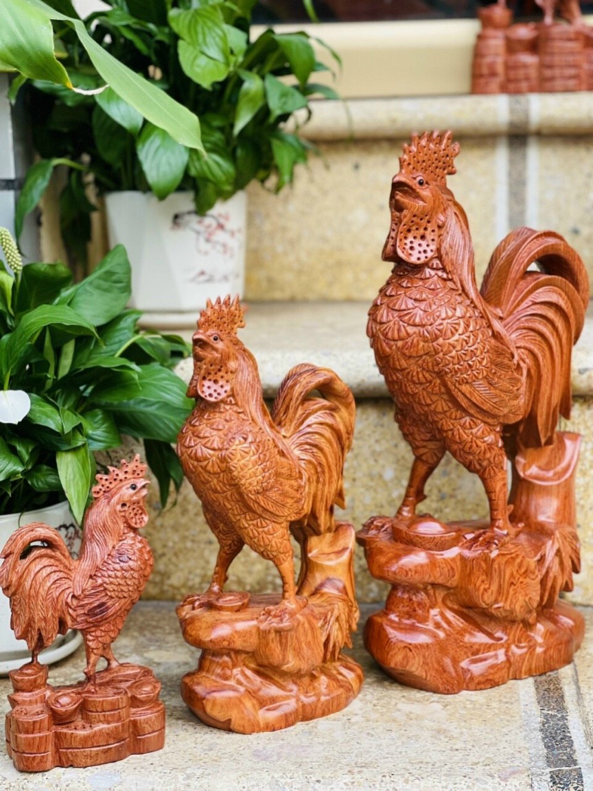Tượng gà trống bằng gỗ hương