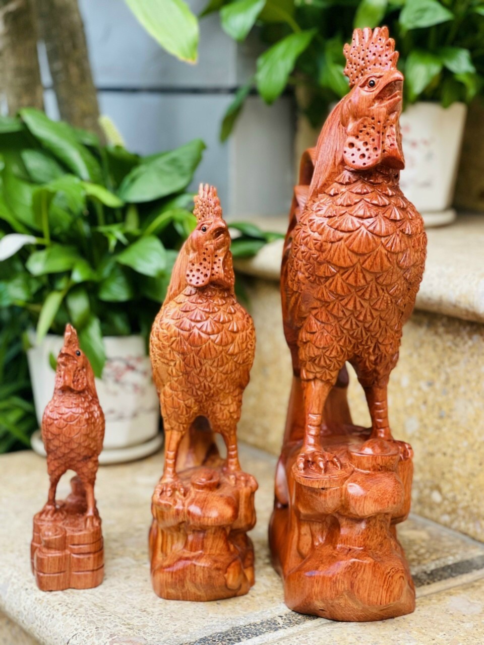 Tượng gà nhất kê tài lộc cao từ 20cm đến 50cm gỗ hương đá nam phi nguyên khối