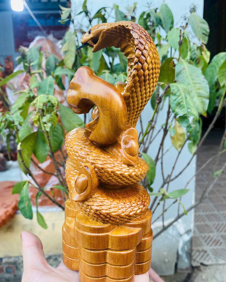✨Tượng con rắn phong thủy cầu tài lộc bằng gỗ bách xanh cao 20x10x8cm