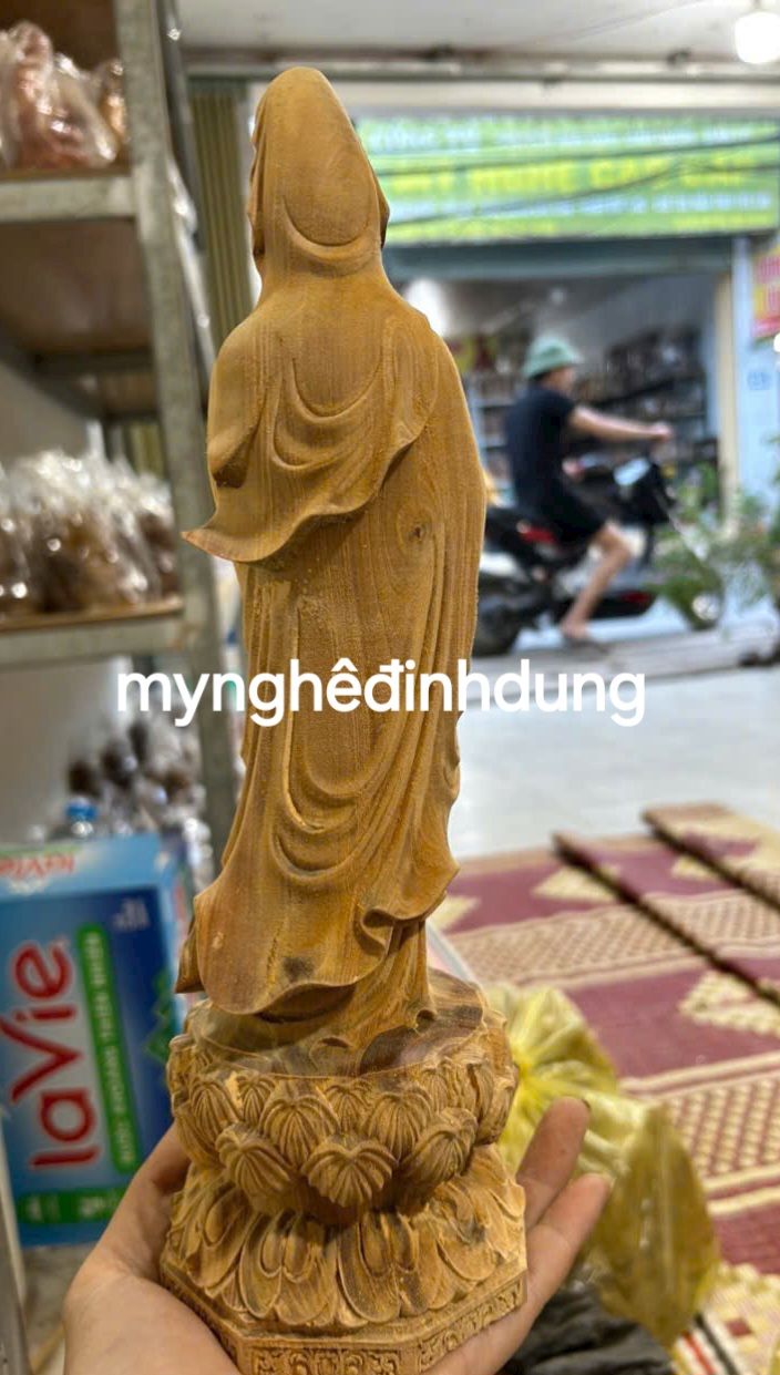 _ Tượng phật quan âm bồ tát nam hải được làm bằng chất liệu gỗ bách xanh liền khối tự nhiên 100% _ kt cao 22x9x7cm _ Tượng được chạm khắc gọt tỉa vô cùng