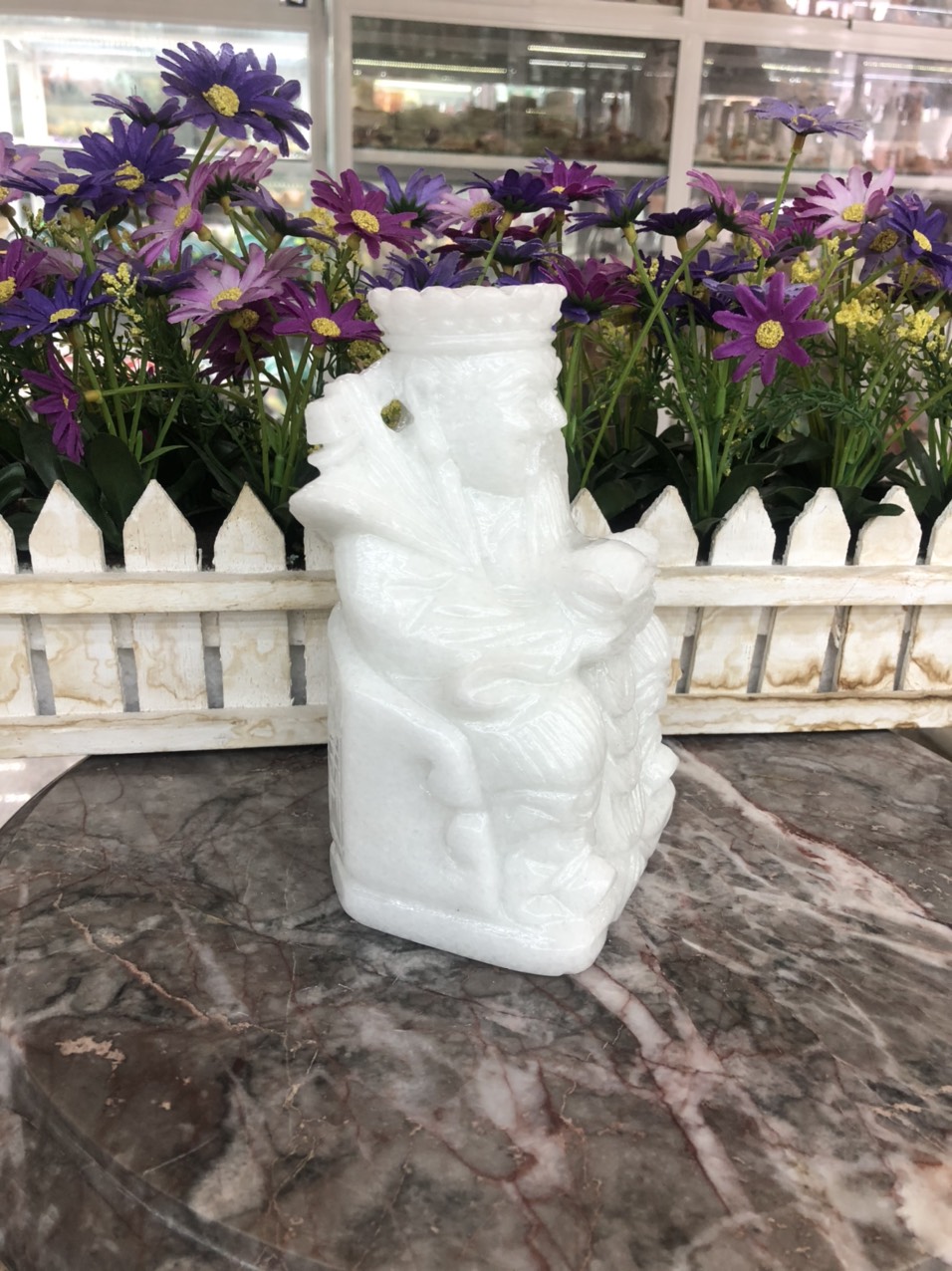 Chất liệu: Đá cẩm thạch trắng Kích thước: Dài 22 cm x Rộng 13 cm x Cao 40 cm Khối lượng: 13,4 kg