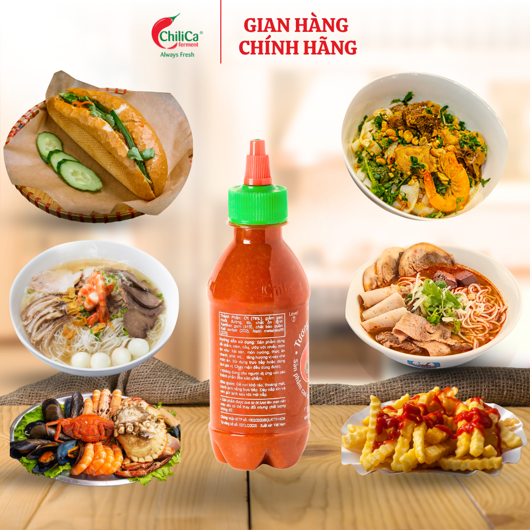 Chua cay mê ngay: Tương Ớt Chilica là sự kết hợp hài hòa của những nguyên liệu tốt và tự nhiên nhất như: ớt chỉ thiên, giấm, đường, muối... Ớt sau khi xay được đưa vào ủ lên men tự nhiên nên có mùi thơm, vị chua cay thanh rất dễ chịu;đáp ứng mọi tiêu chuẩn khắt khe cũng như khẩu vị của người sành ăn.