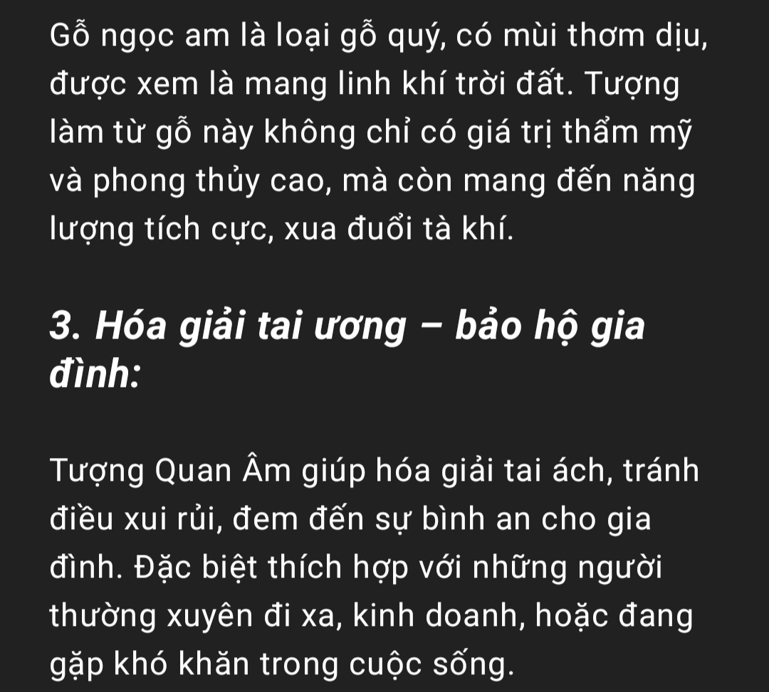 _ Tượng mẹ quan âm bồ tát được làm bằng chất liệu gỗ ngọc Am liền khối tự nhiên 100% _ Kt cao 30x9x9cm _ Tượng được chạm khắc vô cùng tỉ mỉ tinh xảo
