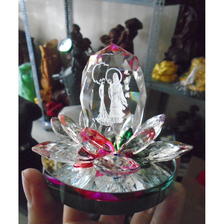 Đài sen pha lê tượng phật, đế đài sen quan âm bồ tát, đế trượng, trang trí tủ thờ