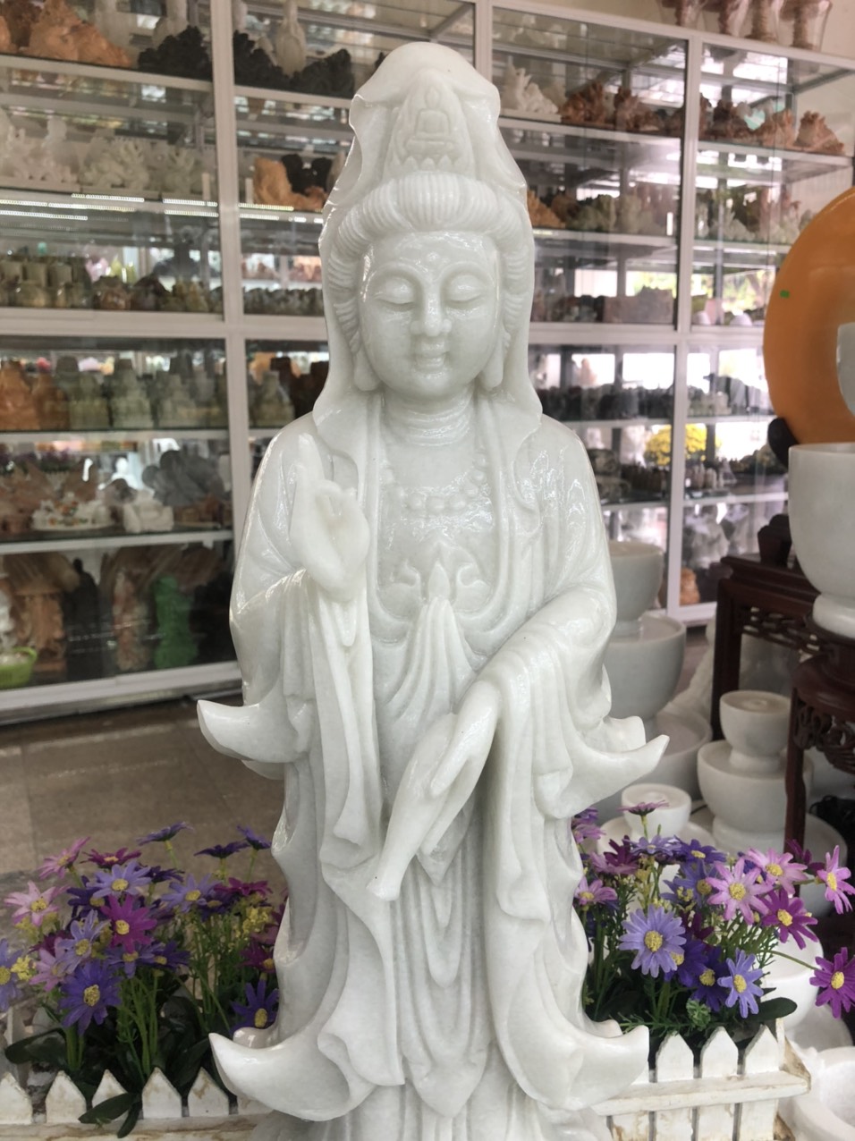 ✨Tượng Phật Bà Quan Thế Âm Bồ Tát đứng đài sen đá cẩm thạch trắng - Cao 60 cm
