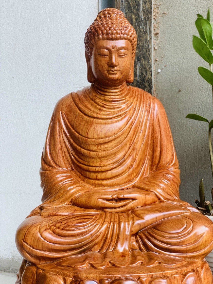 _ Tượng phật thích ca được trạm khắc tỉ mỉ tinh sảo ,Kỳ công đi hầu hết mọi chi tiết góc ngách của tượng đề được chỉnh sửa ngọt tỉa bằng tay thủ công .Đồng thời tượng phật thích ca được kiểm định rất kỹ lưỡng như ,Cho vào thẩm sấy cho gỗ khô kiệt .Mục đích để trống dập nứt vênh mo mối mọt .Kết hợp với trà nhám đánh giấy giáp cho sạch sẽ .Sờ mát lạnh ,Song cho đi phun lót làm bóng mờ .Để giữ lại mầu sắc vân gỗ tự nhiên .Chính vì thế tượng phật di lặc đã đáp ứng đầy đủ những tiêu trí ( Đẹp bền rẻ ) Thẩm mỹ nghệ thuật với chất lượng tuyệt vời