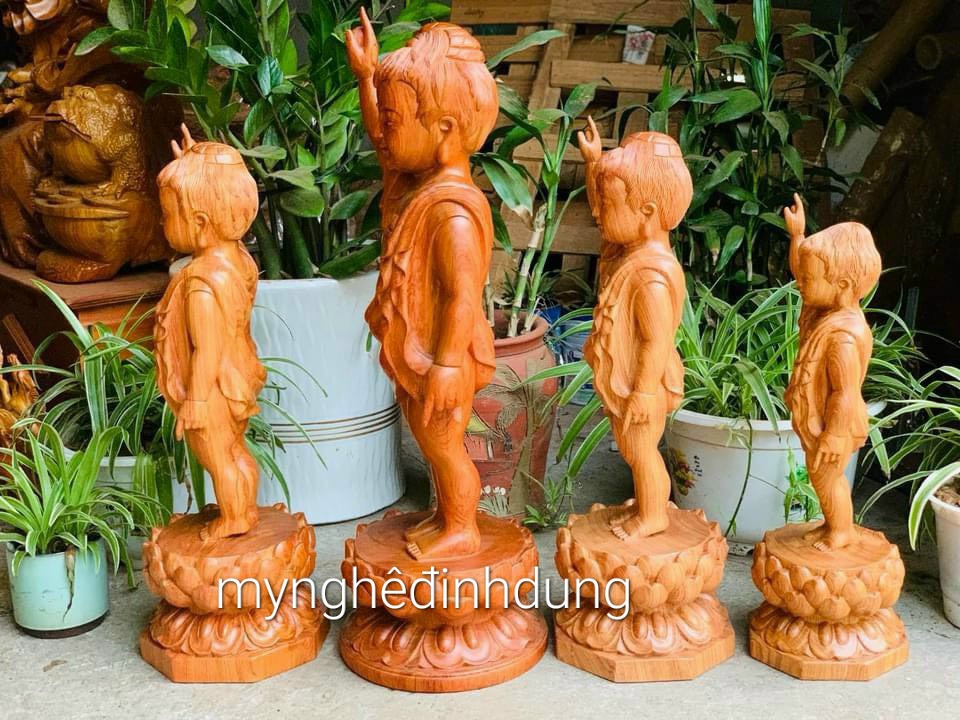 Tượng Phật đản sinh đứng trên đài sen gỗ hương đá | Đồ Gỗ Hướng Mai