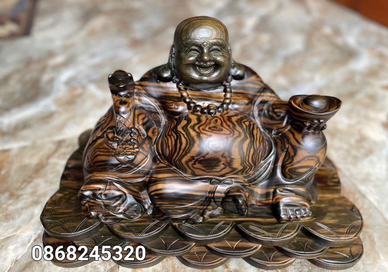 Tượng Phật Di Lặc gỗ Mun hoa Lào nguyên khối đẹp và phong thủy tốt