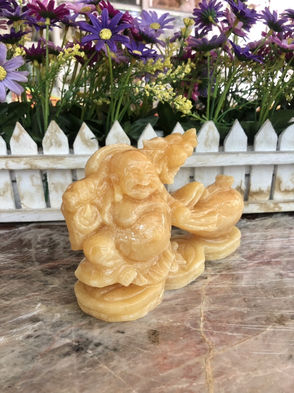 Tượng Phật Di Lặc kéo bao vác cành đào đá Ngọc Hoàng Long #locthanhtrungdk #phongthuy #loiphatday