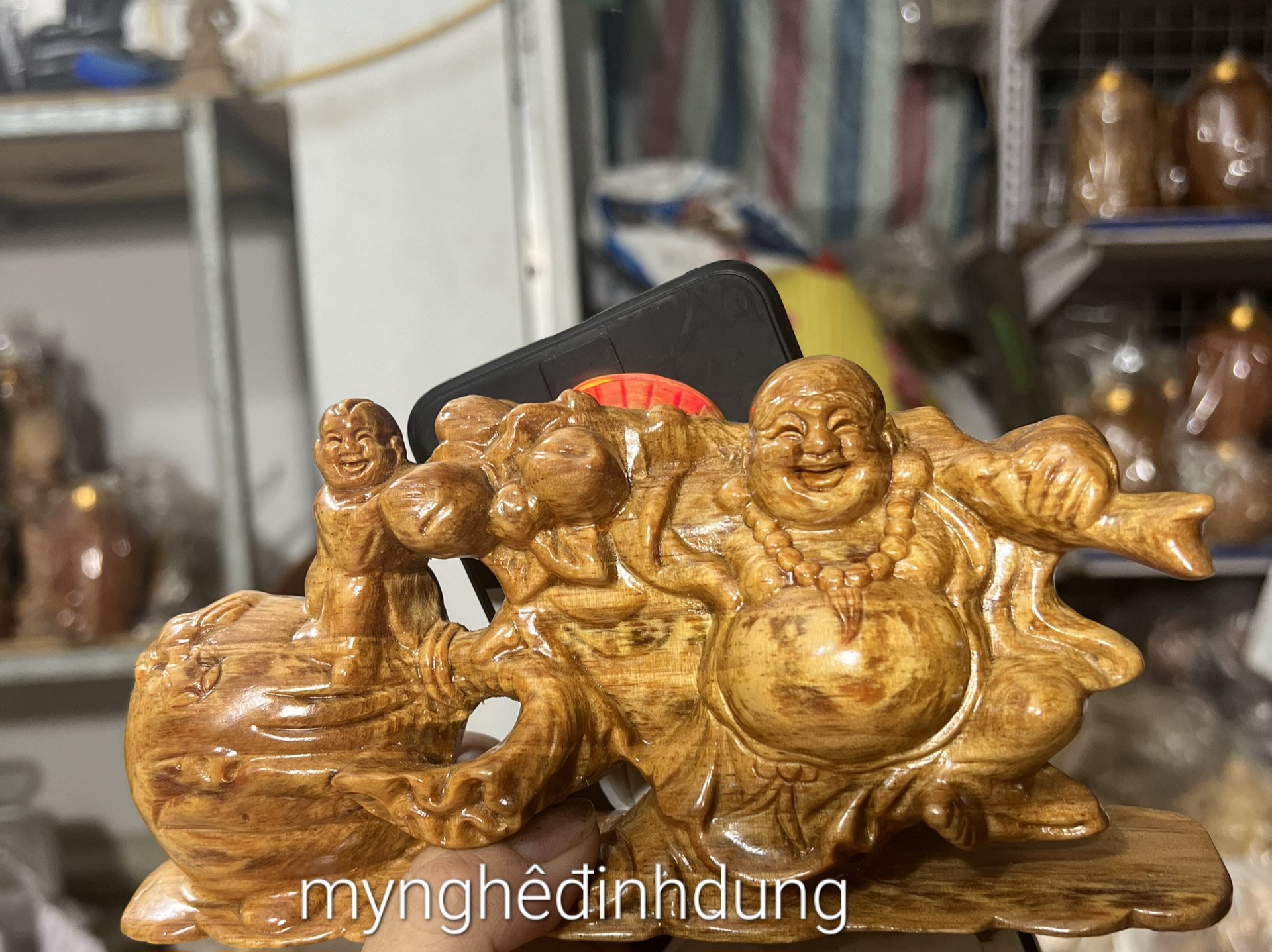 Phật di lặc kéo bao kim tài gỗ huyết long phong thủy giá 770,000VND