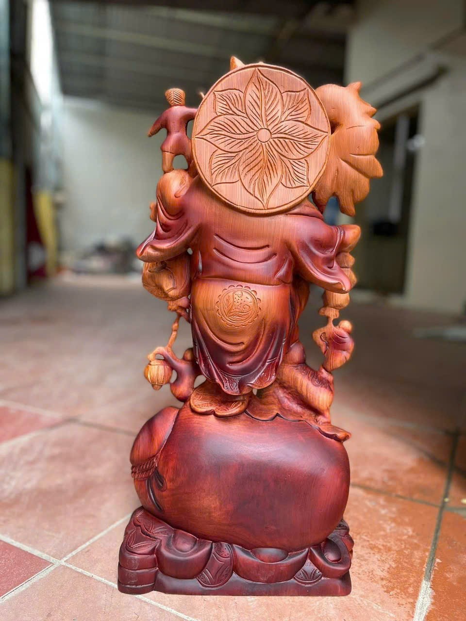 Tượng Phật Di Lặc Gánh Đào Gỗ Nu Hương Hàng Cực VIP - Đồ Gỗ Kangnam