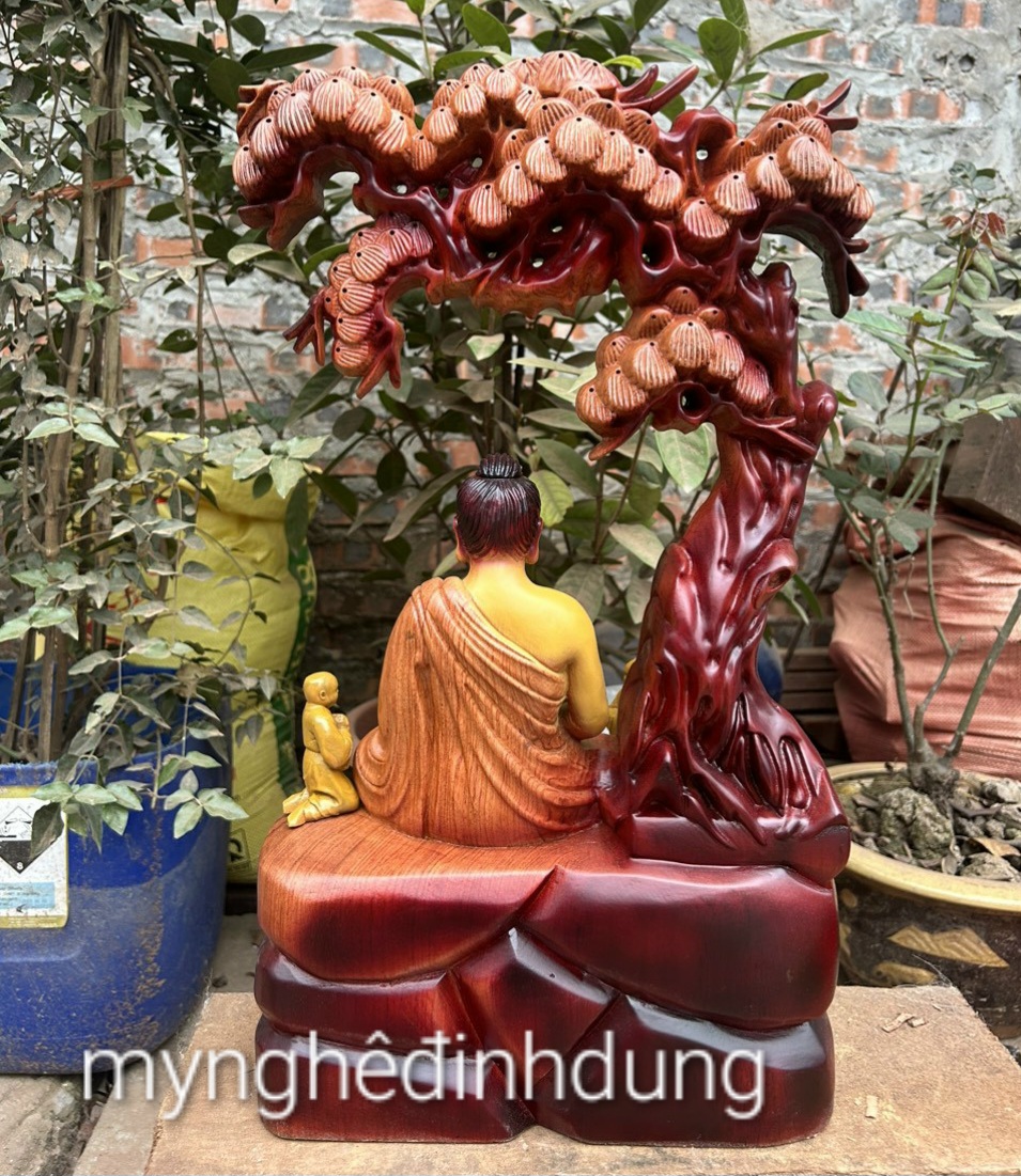 Mua tại Tiktok_ Tượng nhất tâm niệm phật thích ca ngự gốc cây tùng được làm bằng chất liệu gỗ hương đá liền khối tự nhiên 100% .Và được sơn pu dát vàng cao cấp