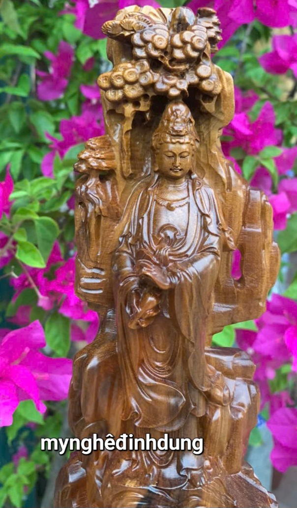 _ Tượng phật quan âm bồ tát nam hải được làm bằng chất liệu gỗ bách xanh liền khối tự nhiên 100% _ kt cao 22x9x7cm _ Tượng được chạm khắc gọt tỉa vô cùng