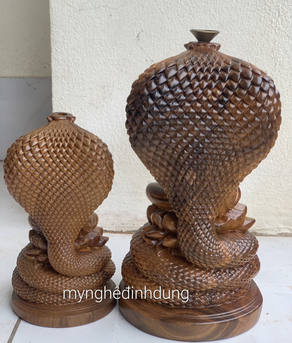 _ Tượng thần rắn bảo vệ Đức Phật được làm bắng chất liệu gỗ bách xanh liền khối tự nhiên 100%