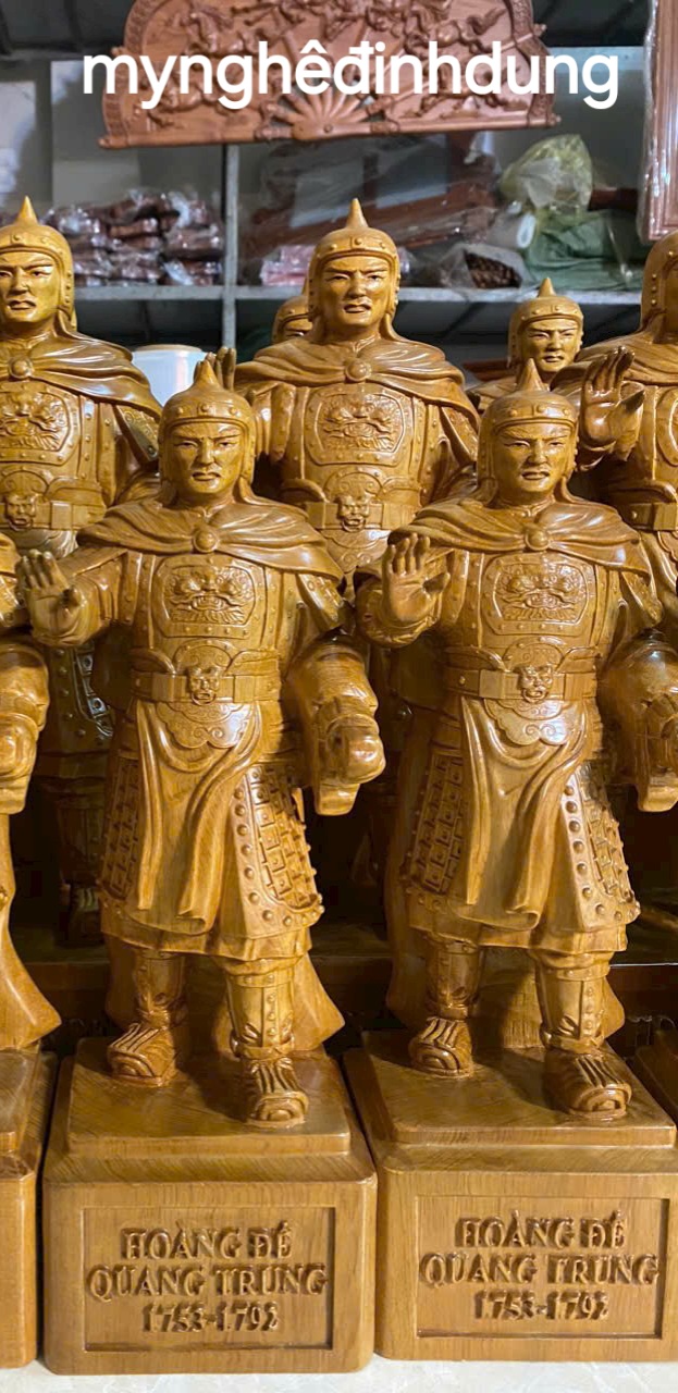 Mua tại TiktokTượng vua hoàng đế quang trung được làm bằng chất liệu gỗ bách xanh liền khối tự nhiên 100% Kt cao 40x13x11cm _ Tượng được chạm khắc vô cùng tỉ mỉ tinh xảo kỳ công. ĐI HẦU tất cả mọi chi tiết góc ngách nội dung hoa văn của Tượng đều được gọt tỉa chỉnh sửa sắc nét hoàn toàn bằng tay thủ công truyền thống.