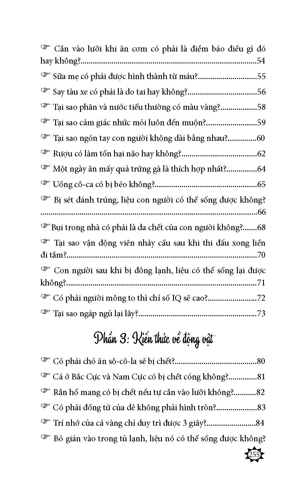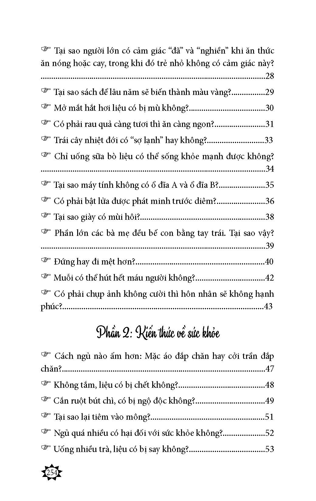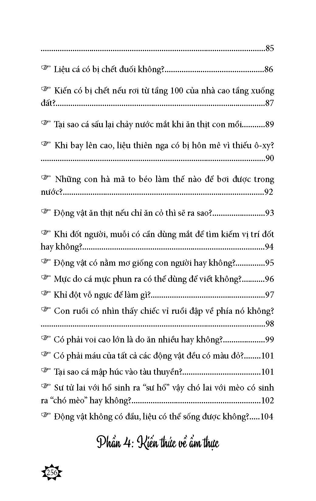 Sách cung cấp các kiến thức về cuộc sống, sức khỏe, động vật, ẩm thực, cơ thể con người, giải trí, lịch sử, văn hóa, khoa học kỹ thuật, về thế giới…nhằm giúp chúng