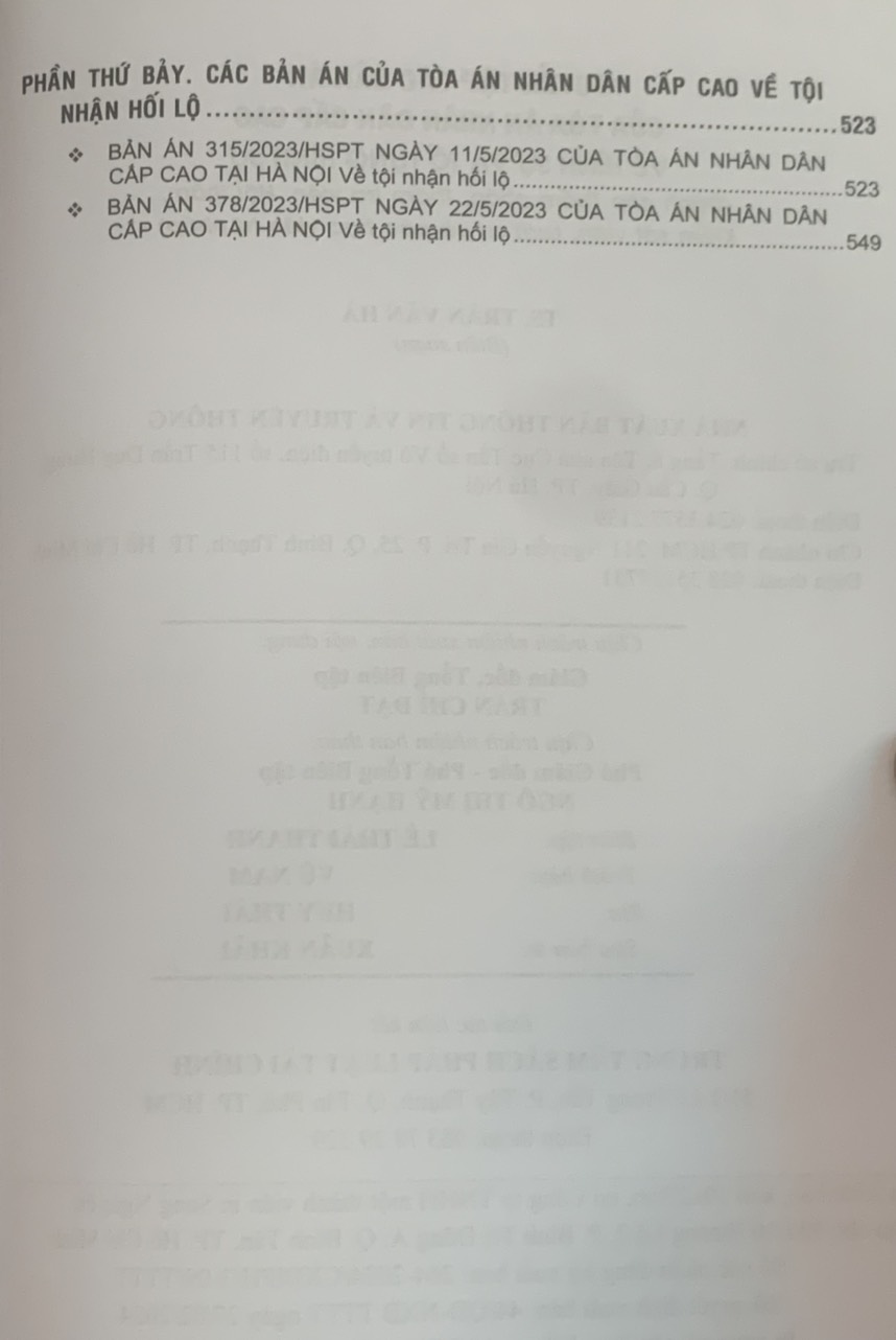 Phần thứ bảy. Các Bản án của Tòa án nhân dân cấp cao về tội nhận hối lộ