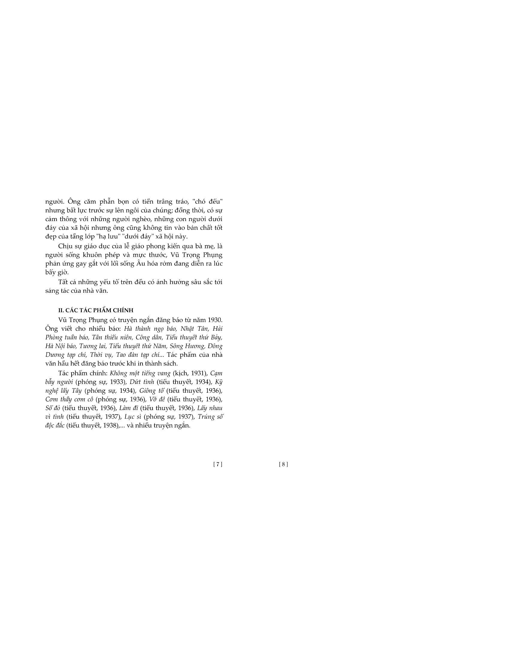 “Tuyển tập VŨ TRỌNG PHỤNG” xin gửi tới quý độc giả những tác phẩm nổi tiếng nhất của nhà văn trên các thể loại: Tiểu thuyết "Số đỏ", "Giông tố"; phóng sự "Cơm thầy cơm cô"; phóng sự "Kỹ nghệ lấy Tây" và nhiều truyện ngắn.