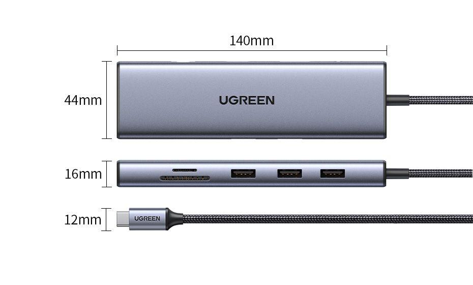 - Sản phẩm chính hãng Ugreen - Bộ chuyển đổi 6 trong 1 tiện dụng - Chuyển đổi tín hiệu USB-C sang HDMI - 3 cổng USB-A 3.0 - Hỗ trợ xuất hình ảnh độ