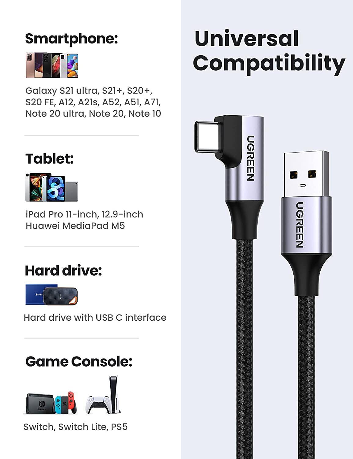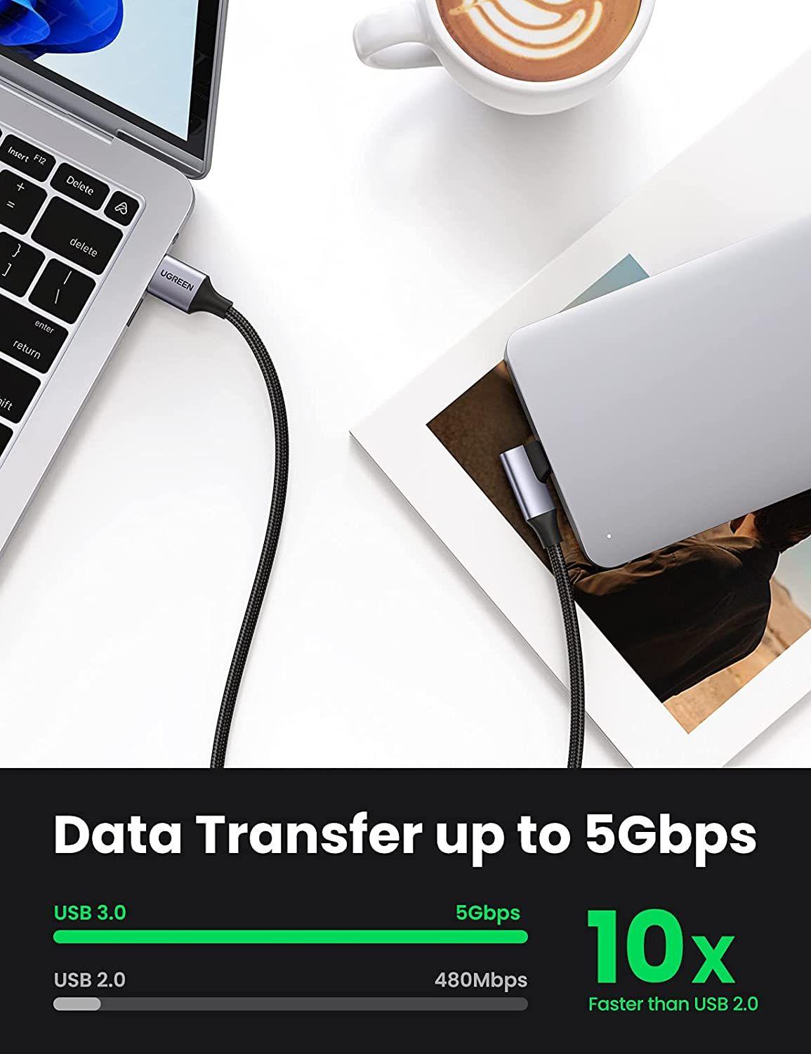 ✨Ugreen UG20299US385TK 1M 3A Cáp Type-C sang USB3.0 hổ trợ Sạc nhanh , truyền dữ liệu đầu C góc 90 độ - HÀNG CHÍNH HÃNG