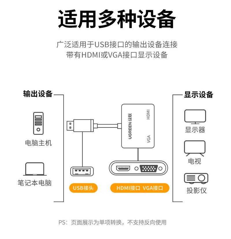 Ugreen 50291 Usb To Hdmi Digital Av Adapter Cm151 1. USB-A Female + USB-A Male to HDMI Converter 2. Input: USB 2.0 A Female 3. Output: HDMI Male 4. USB 2.0 speed up to 480Mbps