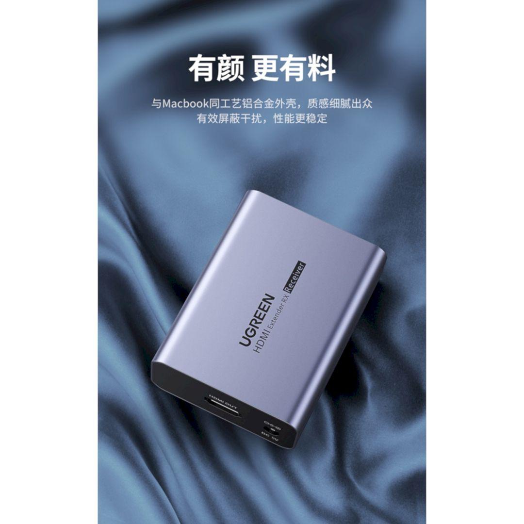 Ugreen 40283 Hdmi Single Extender Receiver 120M By Cat5E 6 With Ir Control HợP Kim KẽM Mm116 1. Features: Receiving HDMI signal through LAN network from Ugreen 40280 HDMI Transmitter 2. Signal length: 120M (CAT6)
