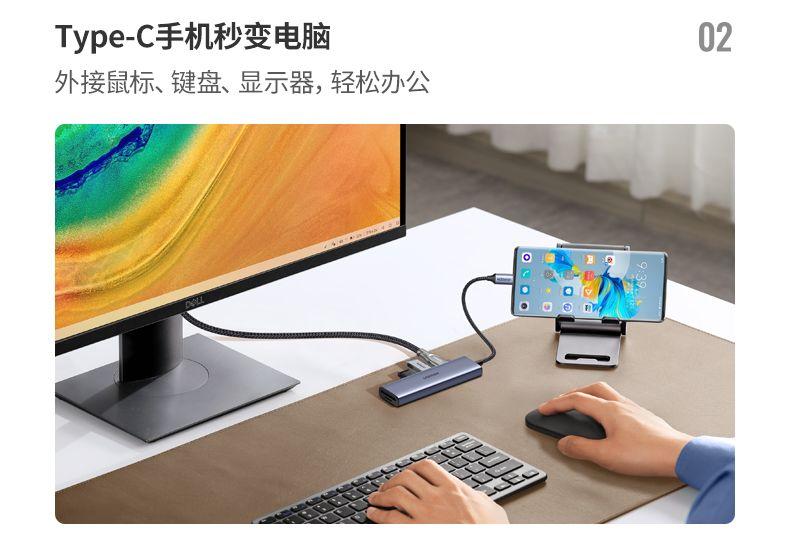 1. Features: Extend more connections from USB Type-c 2. Input: USB Type-C positive 3. Output: 2*usb-c + RJ45 + HDMI 4K60HZ + PD + SD + TF + 2*USB3.0 4. Material: aluminum alloy shell, gold-plated
