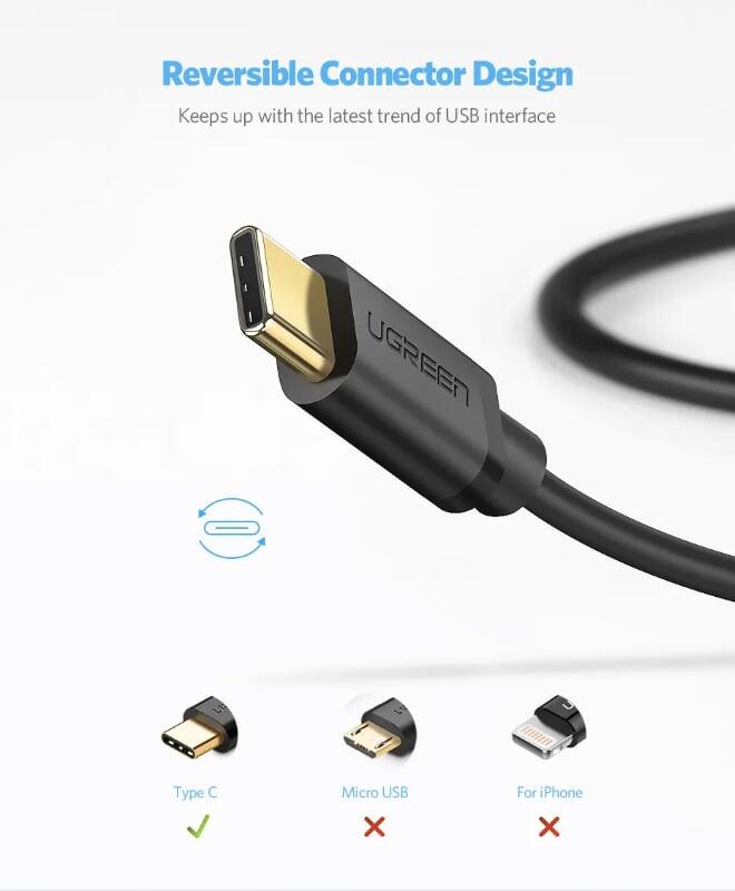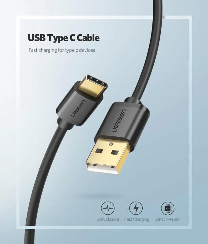 Cáp sạc nhanh USB Type C (1 đầu USB, 1 đầu USB Type-C) độ dài 2m UGREEN US28 (Giá 74k)