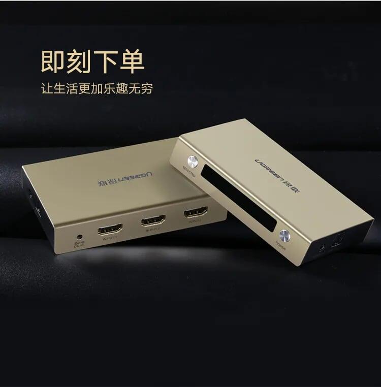 - Bộ Swich Cổng HDMI Ugreen Vào 3 Cổng HDMI Ra 1 Cổng HDMI Remote 40278 với thiết kế nhỏ gọn, vỏ hợp kim cao cấp. Bề mặt tráng nhựa mỏng chống sầy xước, đầu