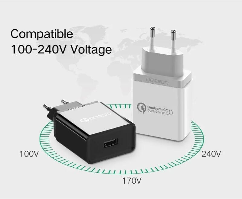 Ugreen 40715 Qc3.0 + Qc3.0 36W Dual Fcp Usb Charger Quick Charge White CD161 1. Input: 100-240V ~ 50 / 60Hz 1.2A 2. Max 2xQuick Charge 3.0 Output: 5V / 3A 9V / 2A 12V