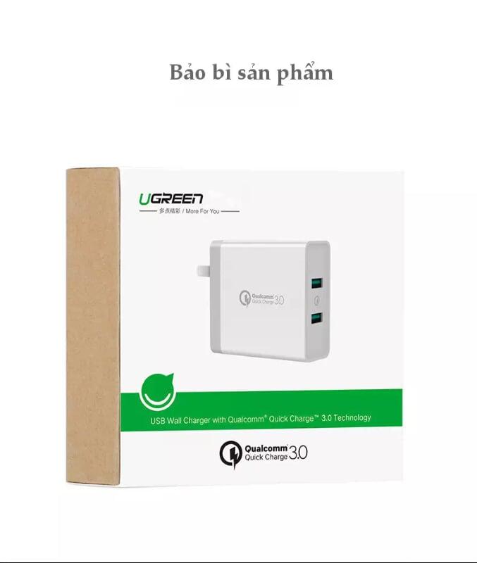 ✨Ugreen UG40715CD161TK 36W màu Trắng Củ sạc nhanh 2 cổng USB chuẩn QC 3.0 - HÀNG CHÍNH HÃNG
